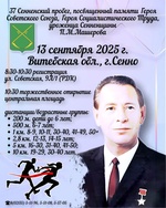 13 сентября 2025 г. в г.Сенно состоится традиционный пробег памяти П.М.Машерова