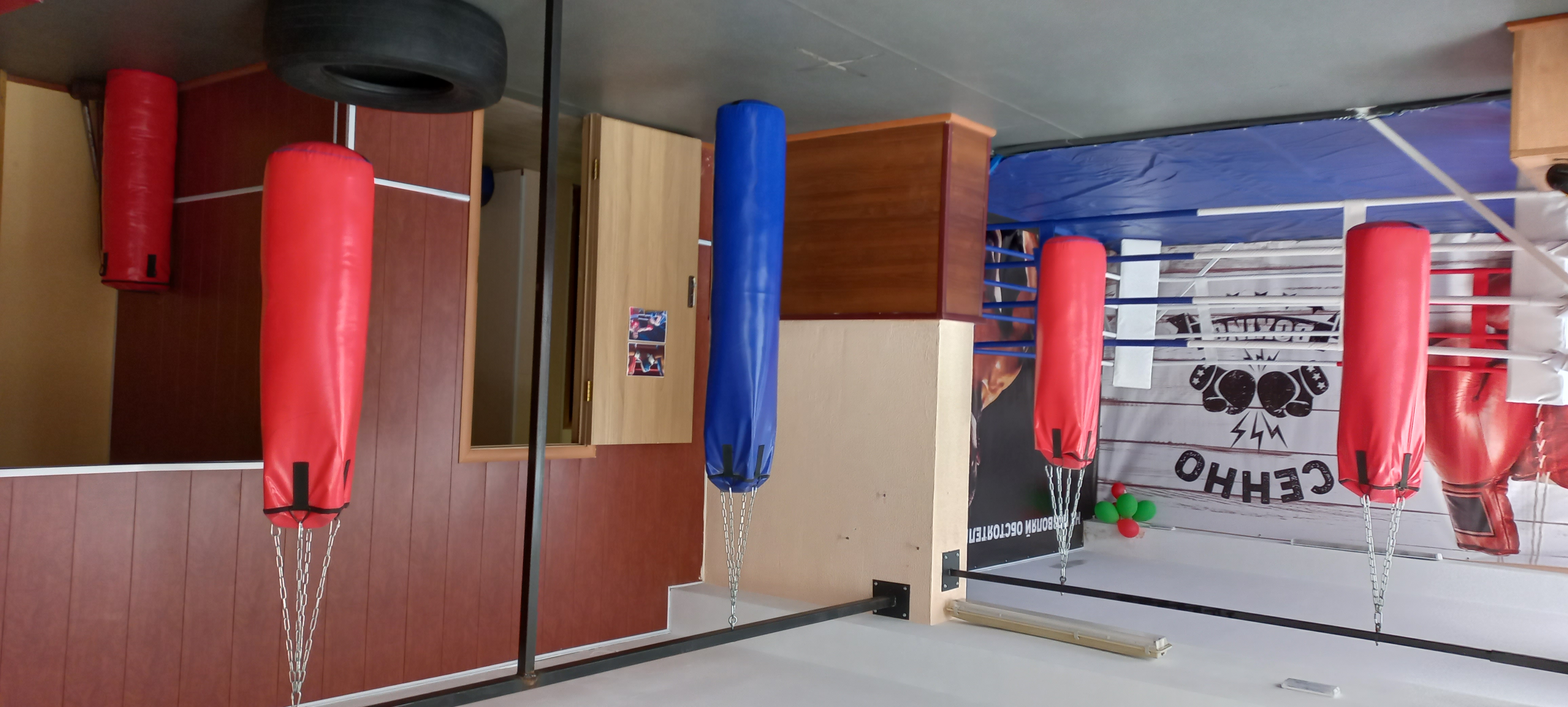 Представляет собой пространство 97,9 кв.м с раздевалкой. Зал оборудован всем необходимым: ринг, мешки, шведская стенка и многое другое. После тренировки можно воспользоваться душем.