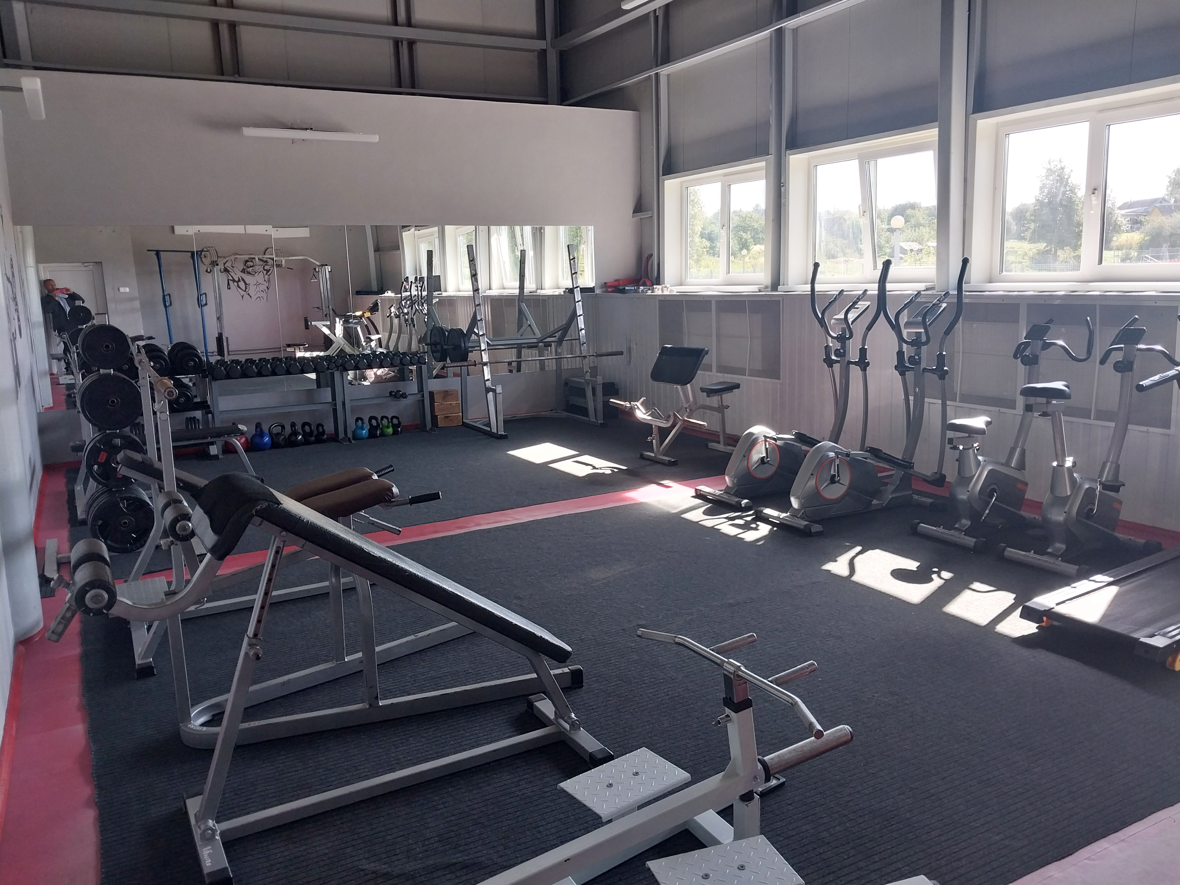Предоставляются услуги тренажерного зала. Размер тренажерного зала 65,2<sup> </sup>кв.м, в нем могут одновременно заниматься 10 человек. Он оборудован современными силовыми тренажерами, гантельным рядом и штангами. Тренажеры обеспечивают развитие мышечной системы человека, детальную проработку отдельных групп мышц.