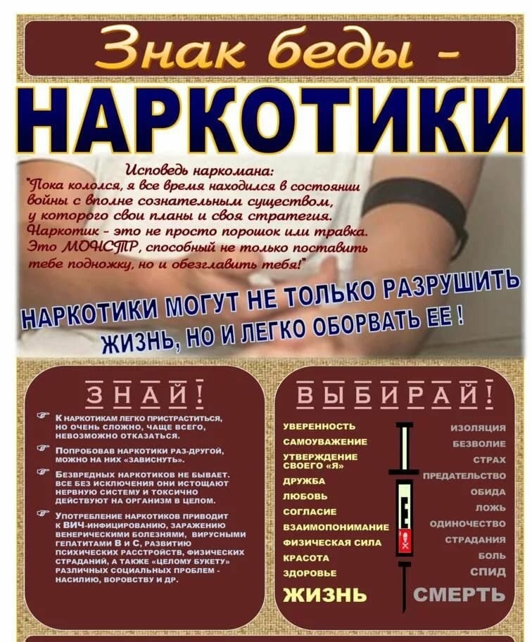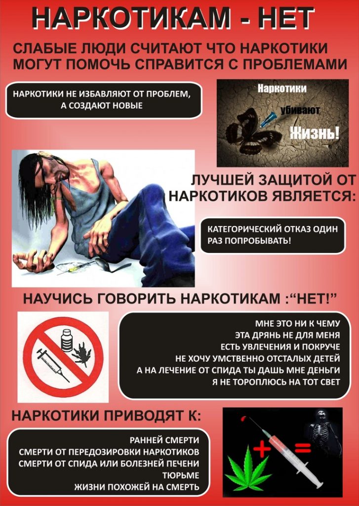 - Старайтесь как можно больше узнать про все, что касается злоупотреблением наркотиками. Вооруженные знаниями, Вы будете иметь перевес